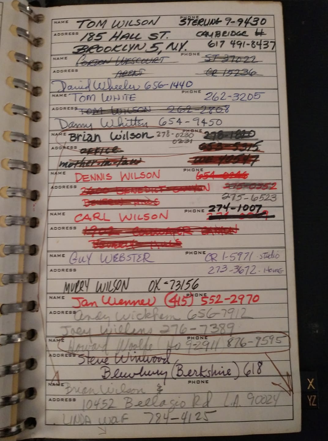 David’s office was beautiful. It was full of art, many of his own paintings were on the walls, and full of warmth. The vibes he created in it and the kindness he exuded was comforting and welcoming. I felt like I was at home. The room was lit from available light as there was a courtyard outside sliding glass doors, and a sweet little patio with a European style, full of plants and trees. David, as I recall with limited memory, was conversational and interested in me and my life; something that I didn’t find all that much in the male dominated music industry, especially among the owners, managers, producers, and record company executives. I was excited to be with David, completely forgetting about the recording session going on. It was exhilarating to have him interested in me as a person, and so for years after this meeting I would go visit David wherever he was working and we would just sit and talk. If I showed up at A&M Records, after he moved over to A&M as a record producer, his secretary knew me and I could seriously just walk into his office and he’d welcome me in to sit and talk. Even after my ex-husband and I moved to the Pacific Northwest when I was forty years old, I’d write David and email to say I was coming down to LA and we would set a date to meet. In fact, flash to recently, I received a photo from his son, Jonathan Anderle, of his father’s phone book, with my name and my parent’s phone number. Check out the stellar characters I am with on this page. What an honor!